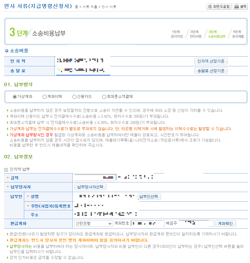 지급명령(독촉)신청하기(3)_지급명령(독촉)신청(첨부파일,소송비용 납부)